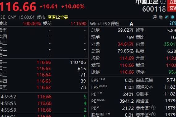 2026年1月12日,中国卫星股票以涨停价收盘。其股票自2025年12月3日以来收盘价格累计上涨幅度为179.16%,同期申万军工行业涨幅40.68%,上证A指涨幅7.42%,公司股票短期涨幅明显高于同期行业及上证指数涨幅。
