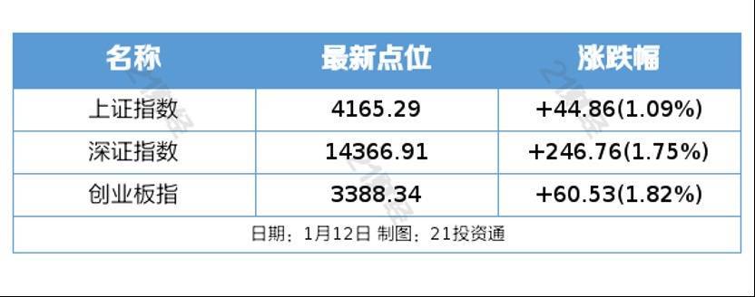 1月12日,市场震荡拉升,三大指数均涨超1%,创业板指探底回升,此前一度跌超1%。截至收盘,沪指涨1.09%,深成指涨1.75%,创业板指涨1.82%。沪深两市成交额3.6万亿元,连续第2个交易日突破3万亿元,较上一个交易日放量4787亿元,刷新此前在2024年10月8日创下的成交额历史纪录。